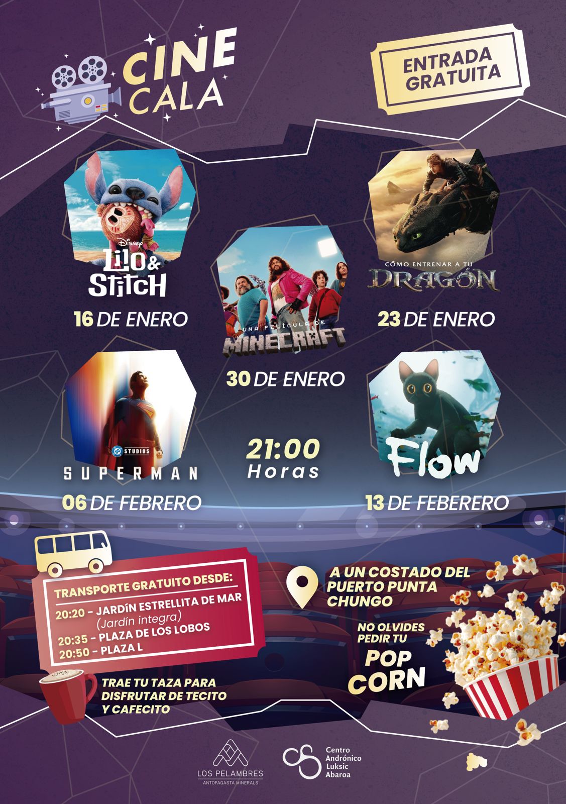 La programación de verano 2026 también contempla el regreso del tradicional Ciclo de Cine Bajo las Estrellas, que se desarrollará todos los viernes desde las 21:00 horas, con funciones gratuitas y un bus de acercamiento para facilitar la llegada de los asistentes. La programación contempla las películas familiares más vistas de 2025.
