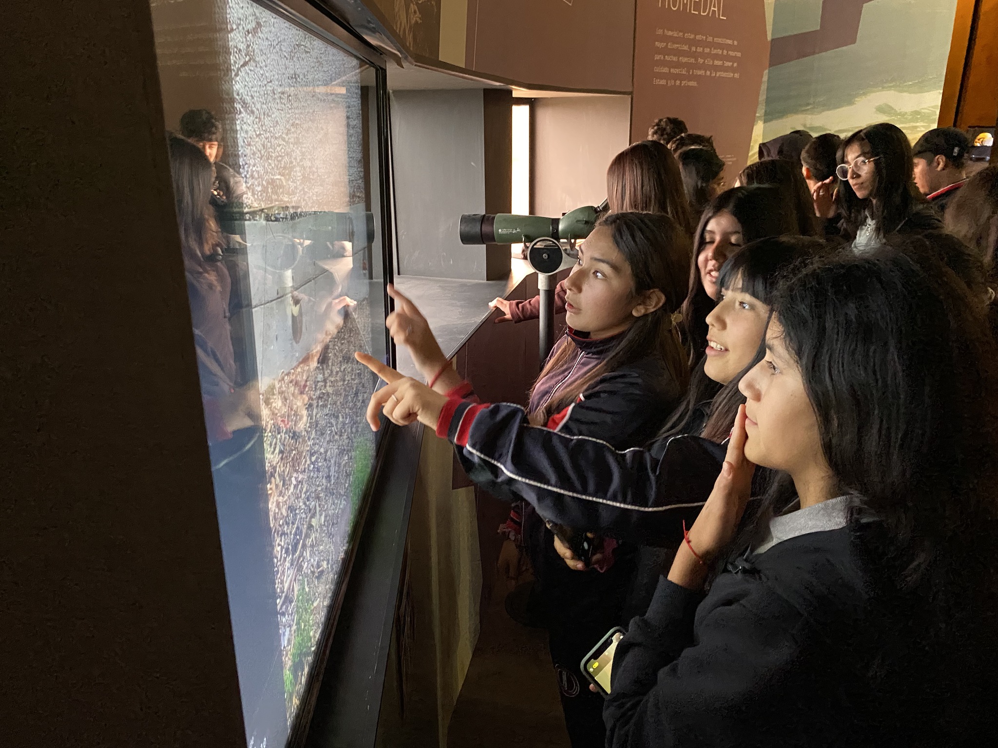 La experiencia continuó en la estación Humedal, donde los jóvenes observaron, a través de catalejos, la flora y fauna de la zona, aprendiendo sobre cómo este sitio se convirtió en Santuario de la Naturaleza y Sitio Ramsar, protegido por Minera Los Pelambres desde 1997.