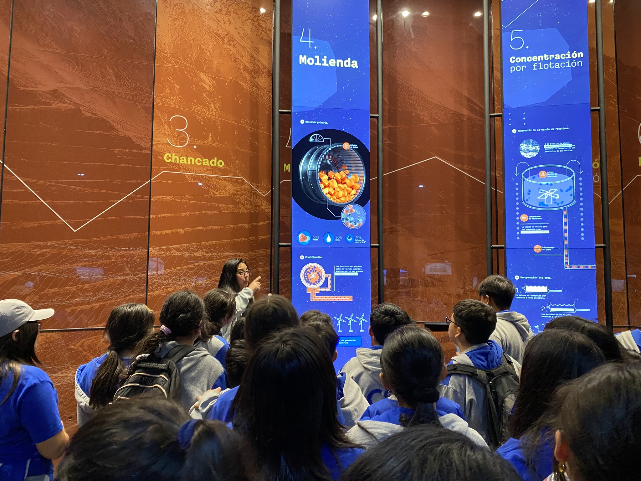 Luego, los cursos ingresaron a la Sala Circular, donde profundizaron en el uso responsable del agua dentro del proceso productivo de Minera Los Pelambres, la importancia del cobre y la relación entre minería y ecosistemas. También conectaron estos temas con las transiciones territoriales revisadas en Interculturalidad.